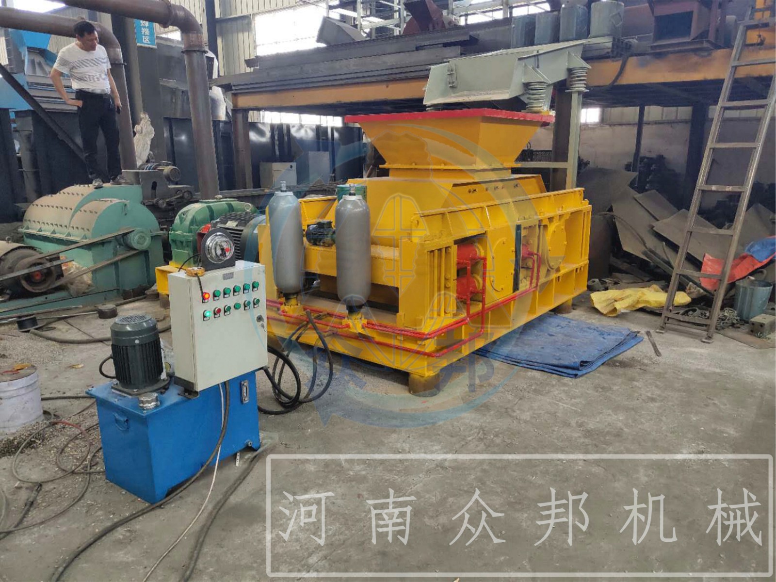 河南眾邦礦山機械設備有限公司(原河南省礦山機械設備有限公司)是專業從事研磨設備、破碎設備、粉碎機械、人工制砂設備、各種配套礦山設備以及各種民用設備的開發和生產的單位,公司主打產品:樹枝粉碎機,園林綠化樹枝粉碎機,城市綠化樹枝粉碎機,手推式樹枝粉碎機,鏈板進料木材破碎機,大型木頭樹枝粉碎機,環錘式破碎機, 顎式破碎機,液壓對輥破碎機,液壓雙輥制砂機,對輥制砂機,反擊破碎機,齒輥式破碎機,木材粉碎機,木料粉碎機,鋸末粉碎機,木屑粉碎機,礦石破碎機,木材切片機,木頭削片機,木材破碎機,鋸末烘干機,雙輥式破碎機等。自公司成立以來,注重自身形象建設,堅持以“誠信為本,品質至上”的經營理念,深受廣大國內外客戶的好評。公司擁有一支經驗豐富、技術精湛的售后服務團隊,客戶購機前,公司免費派工程技術人員到現場為用戶規劃場地,設計最佳流程和方案;購機后,公司將免費指派專業的售后服務人員到達現場指導客戶安裝調試和規劃管理設備。眾邦機械始終以;真誠的信譽,先進的技術,可靠的質量,滿意的服務來滿足廣大客戶對我們公司產品的需求。